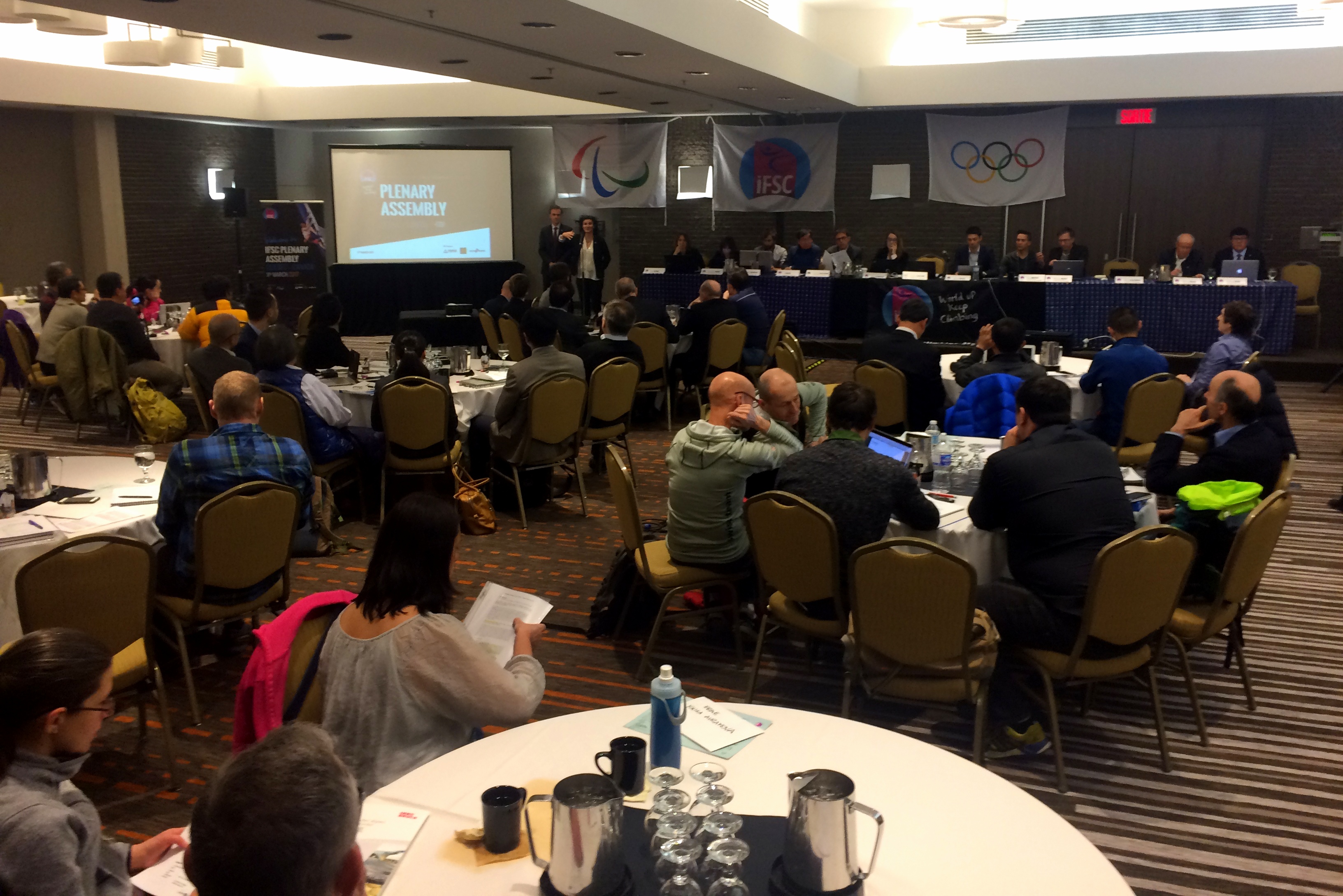 V soboto, 11. marca 2017, je v kanadskem mestu Quebec potekala skupščina Mednarodne zveze za športno plezanje (IFSC), na kateri se je zbralo okoli 100 udeležencev, od tega 41 z glasovalno pravico. Poleg poročil za preteklo leto in načrtov za leto 2017 so bili na skupščini obravnavani tudi predlogi sprememb pravil IFSC glede notranje organiziranosti in spremembo vrste članstva. Posebna pozornost pa je bila posvečena pripravam na mladinske olimpijske igre Buenos Aires 2018 in na olimpijske igre Tokio 2020, na katerih bo prvič vključeno tudi športno plezanje.