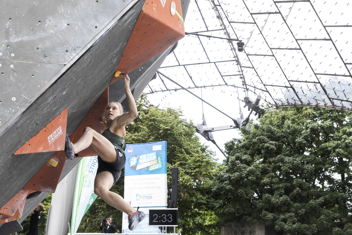 >>> Janja je v Münchnu zmagala še na sklepni tekmi svetovnega pokala in si tako priplezala tudi drugo mesto v skupnem seštevku SP 2017 v balvanih. Več: Dvakrat zlata in dvakrat srebrna Janja Garnbret v Münchnu