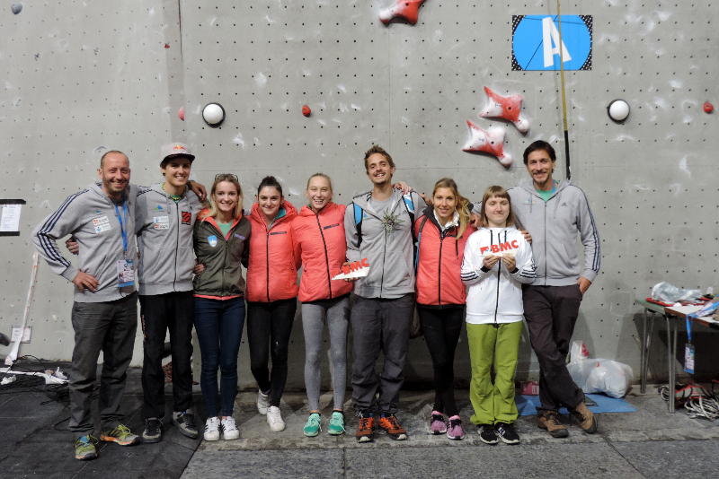 Slovenski reprezentanca v športnem plezanju in paraplezalna reprezentanca skupaj v Edinburgu: Urh Čehovin, Domen Škofic, Tjaša Kalan, Mia Krampl, Janja Garnbret, Gregor Selak, Mina Markovič, Tanja Glušič in Jurij Ravnik. (foto arhiv Jurija Ravnika)