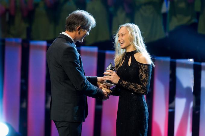 Janja Garnbret je priznanje prejela iz rok Toma Česna. (foto Žiga Zupan/Sportida, vir Siol.net)