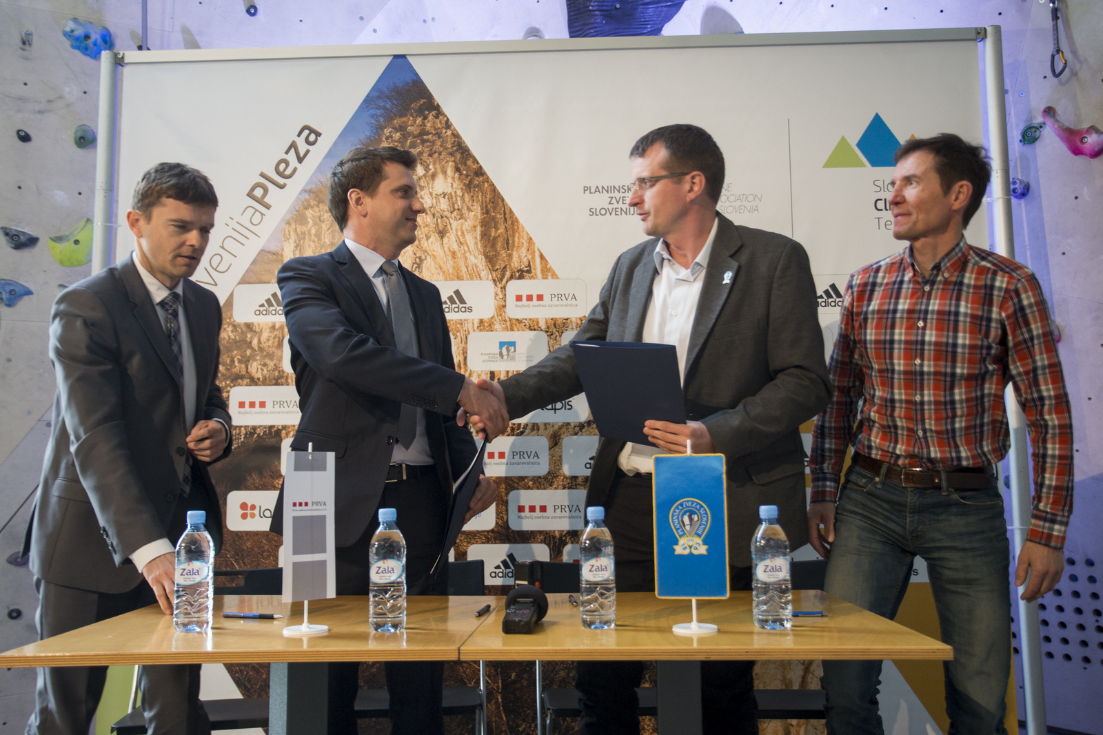 plezanju in nekaterih športnoplezalnih tekmovanj. Pogodbo so podpisali izvršna direktorja Prve osebne zavarovalnice Janez Kranjc in Boštjan Škufca Zaveršek ter predsednik Planinske zveze Slovenije Bojan Rotovnik in načelnik Komisije za športno plezanje PZS Aleš Pirc.