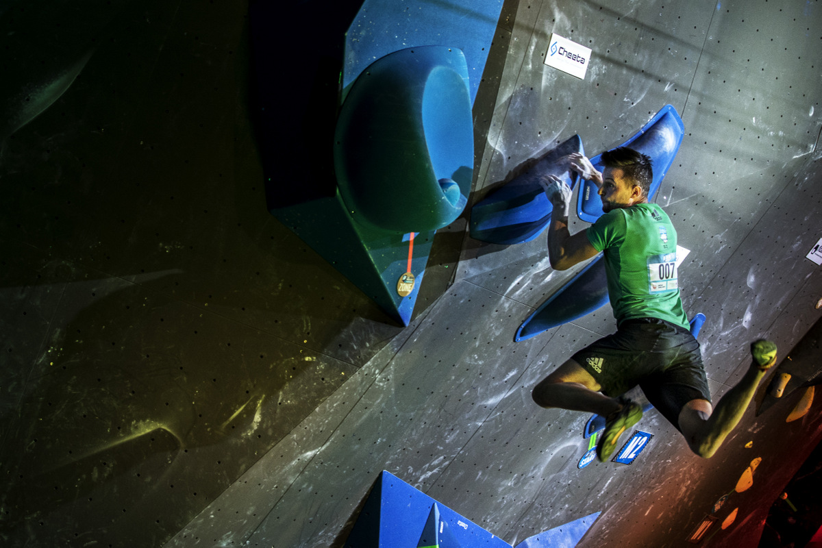 Jernej Kruder si je na uvodni balvanski tekmi v sezoni priplezal prvo zmago v svetovnem pokalu v športnem plezanju (foto Luka Fonda)