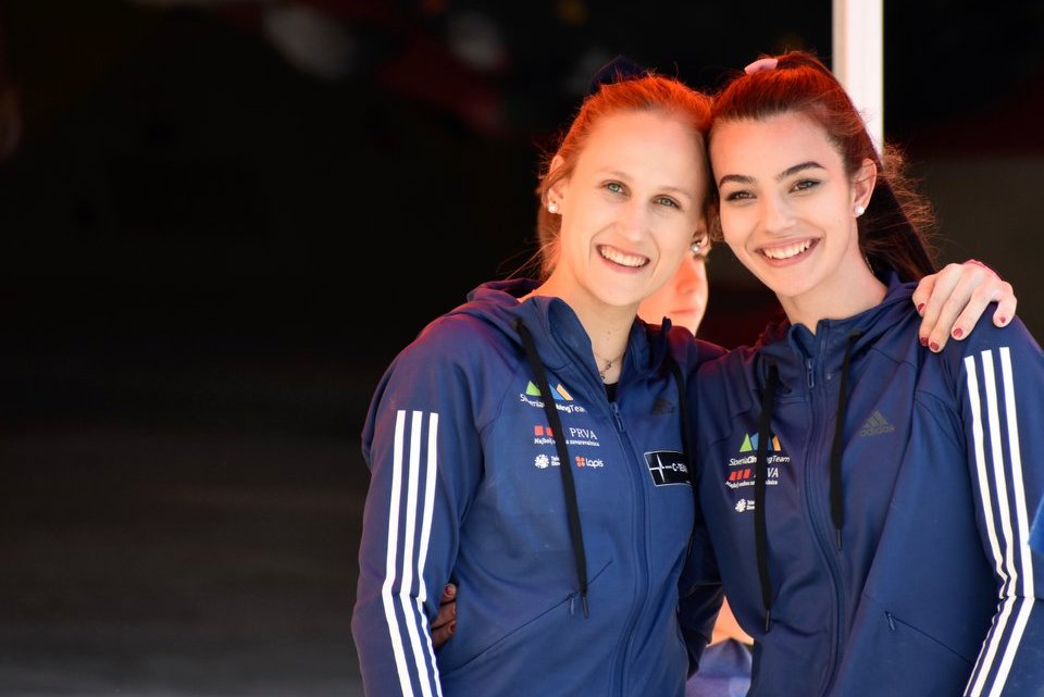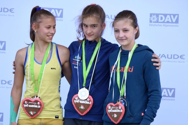 Tjaša Slemenšek, med mladinkami druga v Münchnu in tretja v skupnem seštevku EMP, ter Lučka Rakovec, zmagovalka med kadetinjami v Nemčiji in druga v skupnem seštevku težavnosti (foto slovenska mladinska reprezentanca v športnem plezanju)