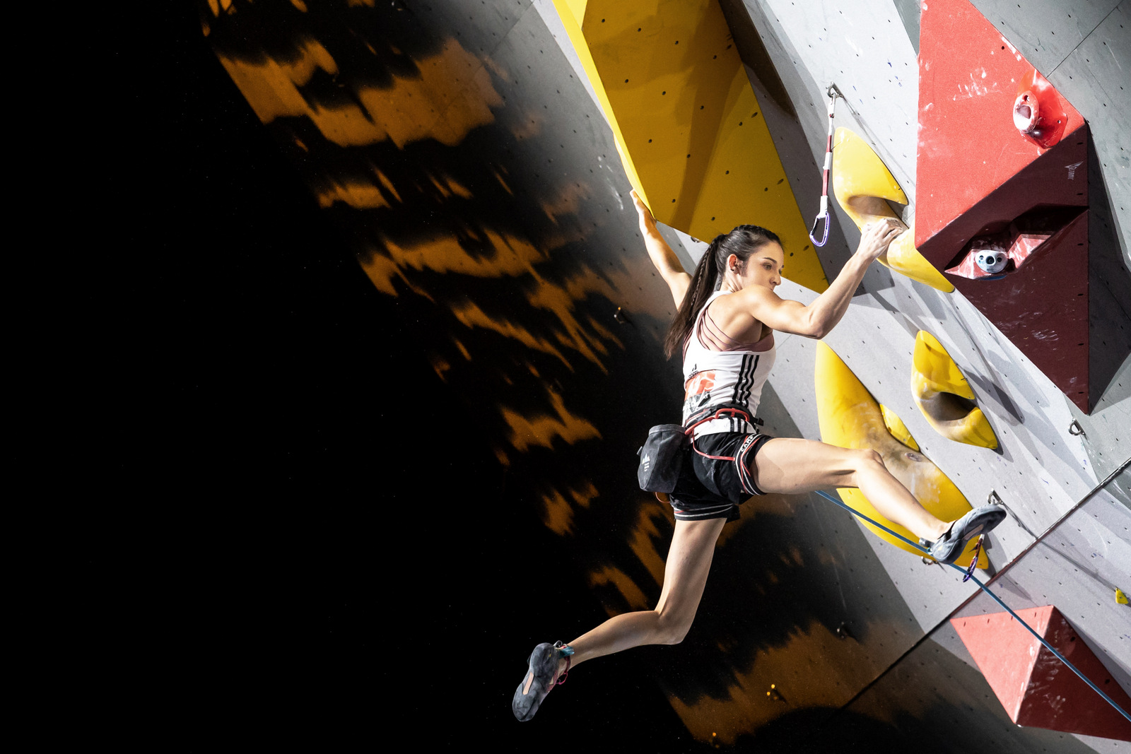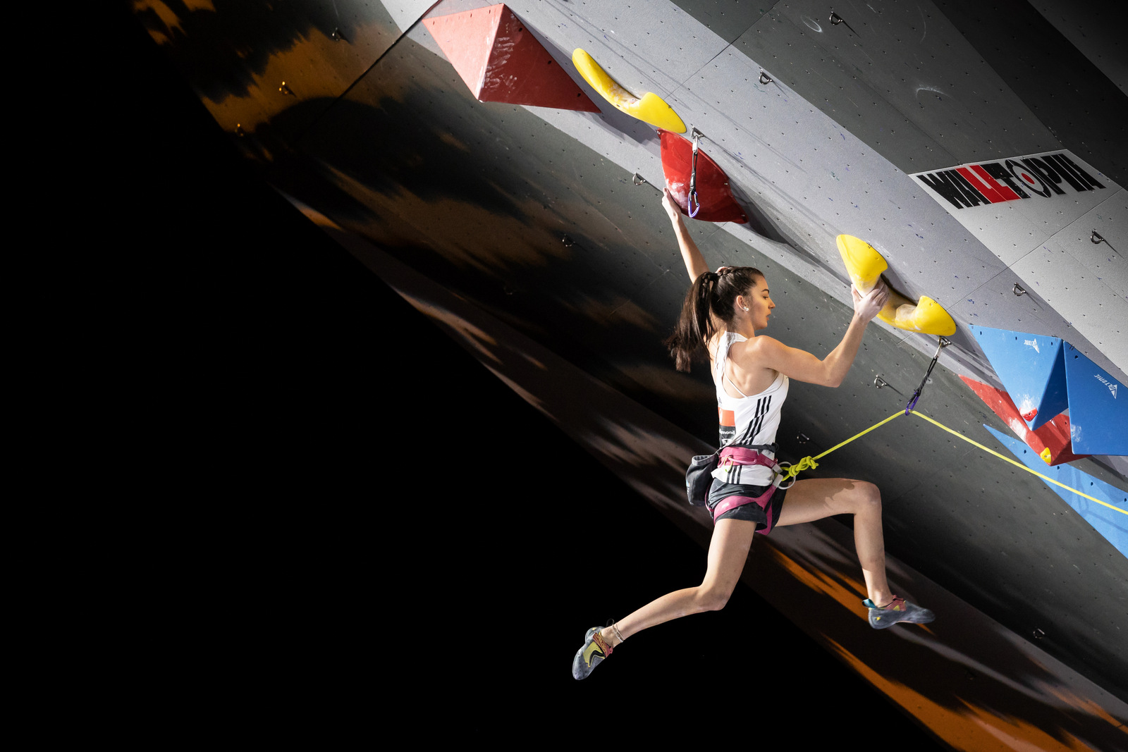 Janja Garnbret v finale SP v težavnosti vstopa kot vodilna, skupaj s še trojico tekmovalk (foto Luka Fonda)