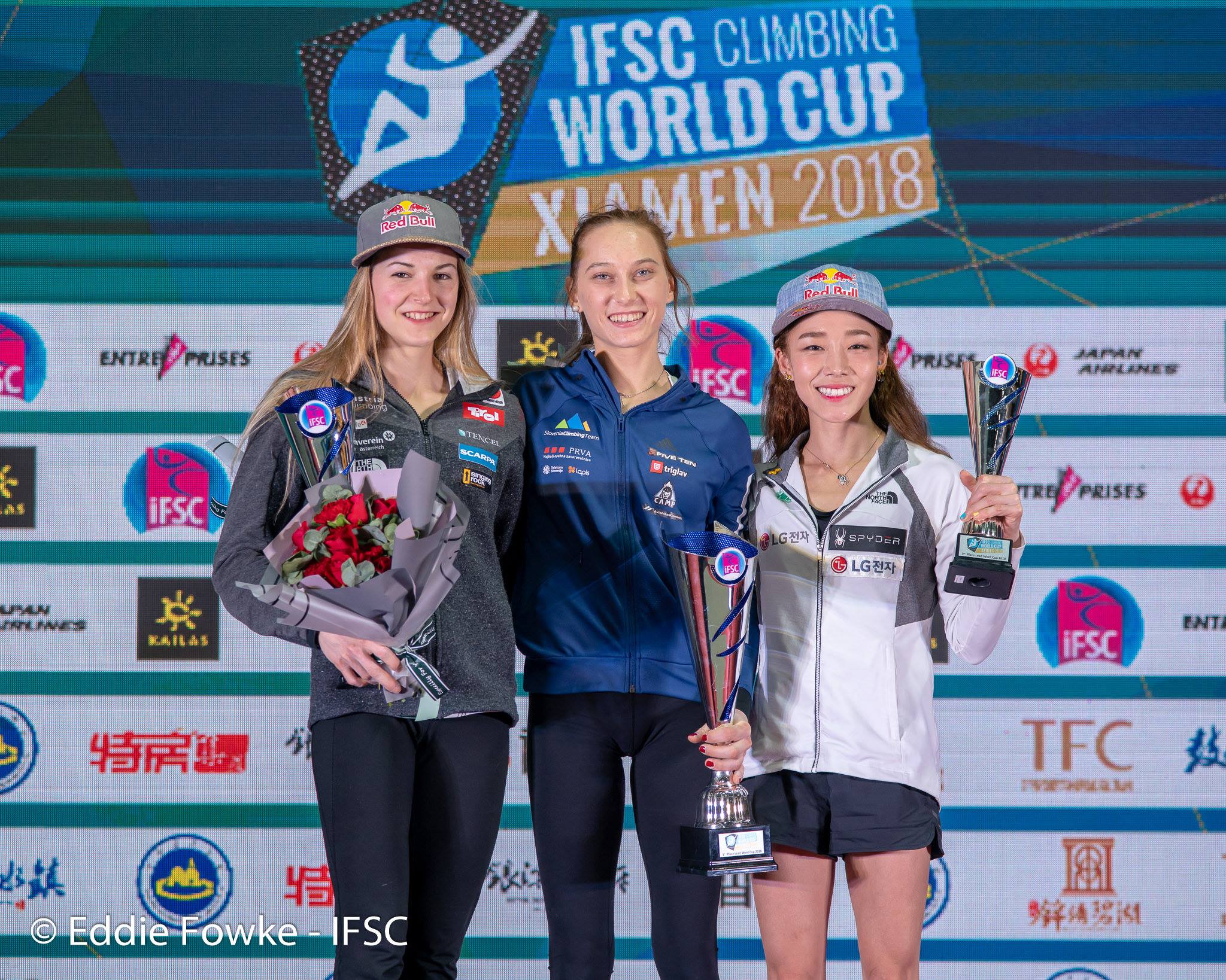 Kitajski Xiamen je bil 28. oktobra kraj srečnega imena za slovensko športno plezanje, saj je na zadnji tekmi svetovnega pokala 2018 v težavnosti Domen Škofic po dveletnem premoru znova stopil na najvišjo stopničko, Janja Garnbret je bila druga, ekipni uspeh pa so dopolnile še Mia Krampl s četrtim mestom, uspehom kariere, ter Mina Markovič in Tjaša Kalan, ki sta bili šesta oz. sedma.