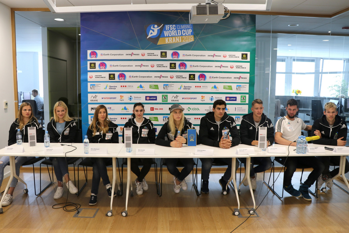 Novinarska konferenca slovenske reprezentance v športnem plezanju pred domačo tekmo SP v Kranju (foto Manca Ogrin)