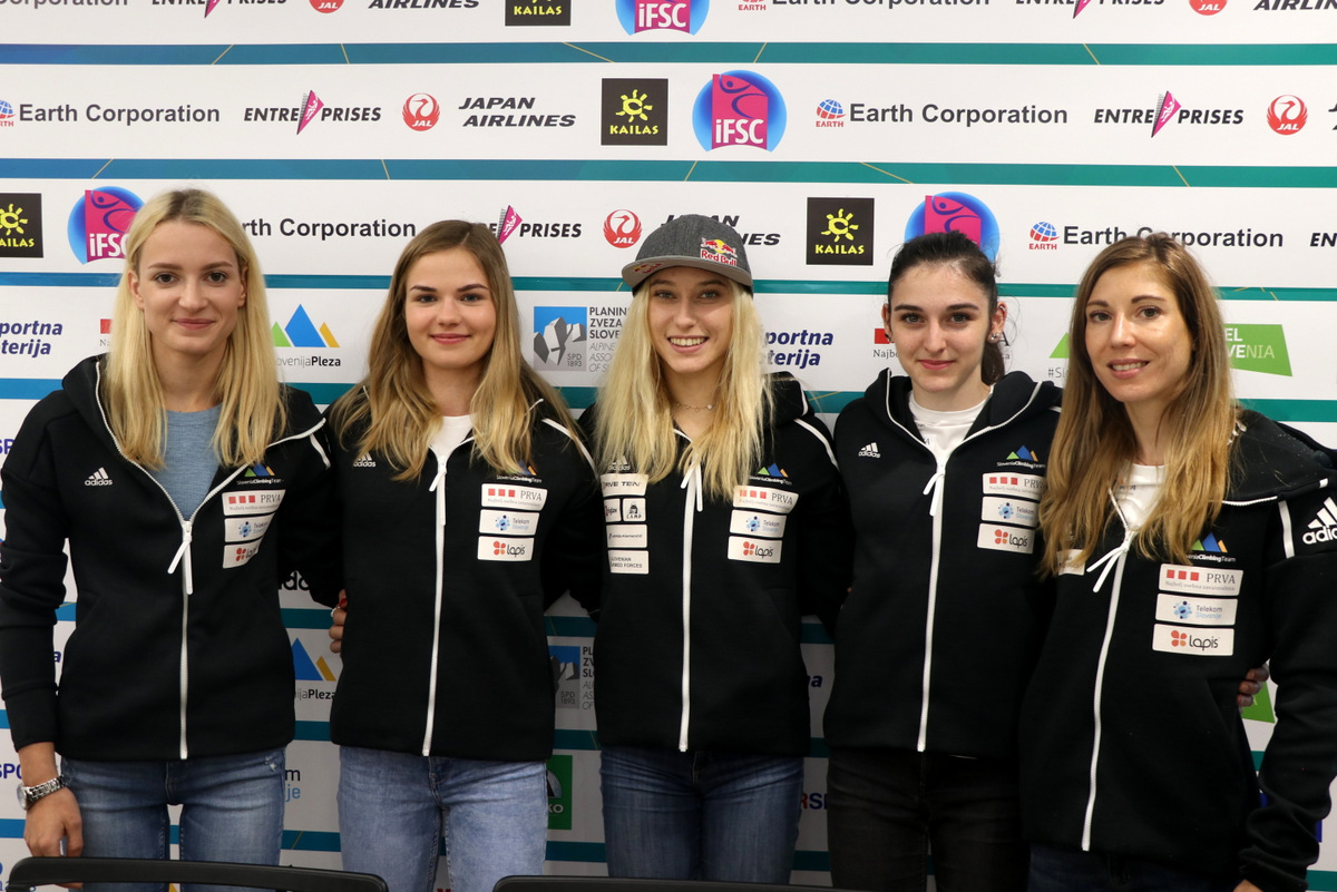 Tjaša Kalan, Vita Lukan, Janja Garnbret, Mia Krampl in Mina Markovič (foto Manca Ogrin)