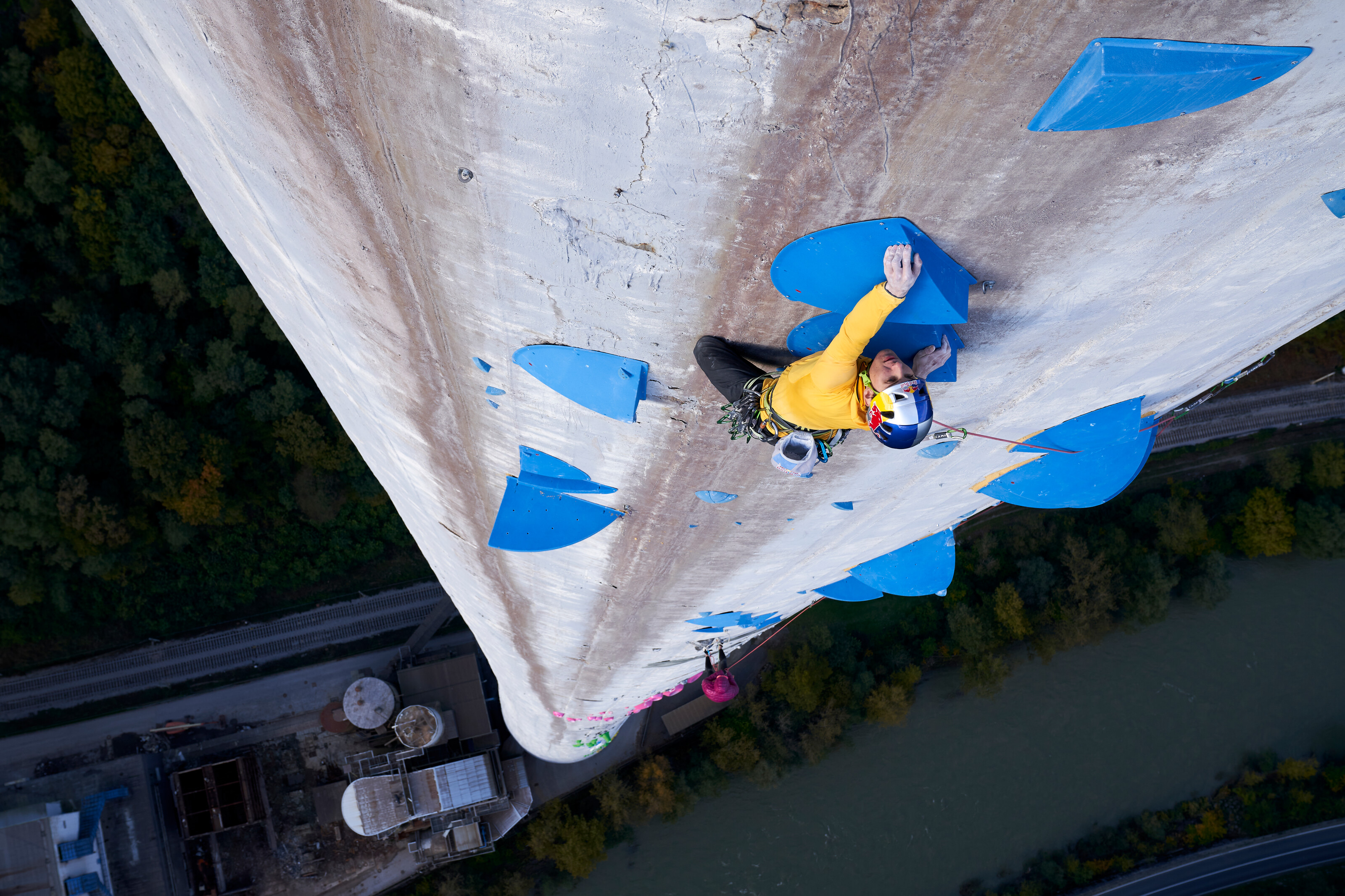 Pod betonskega orjaka, ki ga pokonci drži 11.866 kubičnih metrov betona in preko 1.000 ton armature, sta Janja in Domen tako 9. oktobra stopila suverena in oborožena z vso svojo plezalsko odličnostjo in novo osvojenim znanjem vrvne tehnike. Smer sta od spodaj prvič videla večer prej in dobila le osnovne informacije o njej, da sta lahko izbrala pravilno opremo. To je pomenilo, da se jo lotevata na pogled, kar v plezalskem svetu pomeni, brez podatkov o detaljnem poteku smeri, oprimkih, delikatnih, ključnih gibih... Kdo se bo prvi pognal v smer sta določila z metom kovanca. Ta je pokazal na Domna.