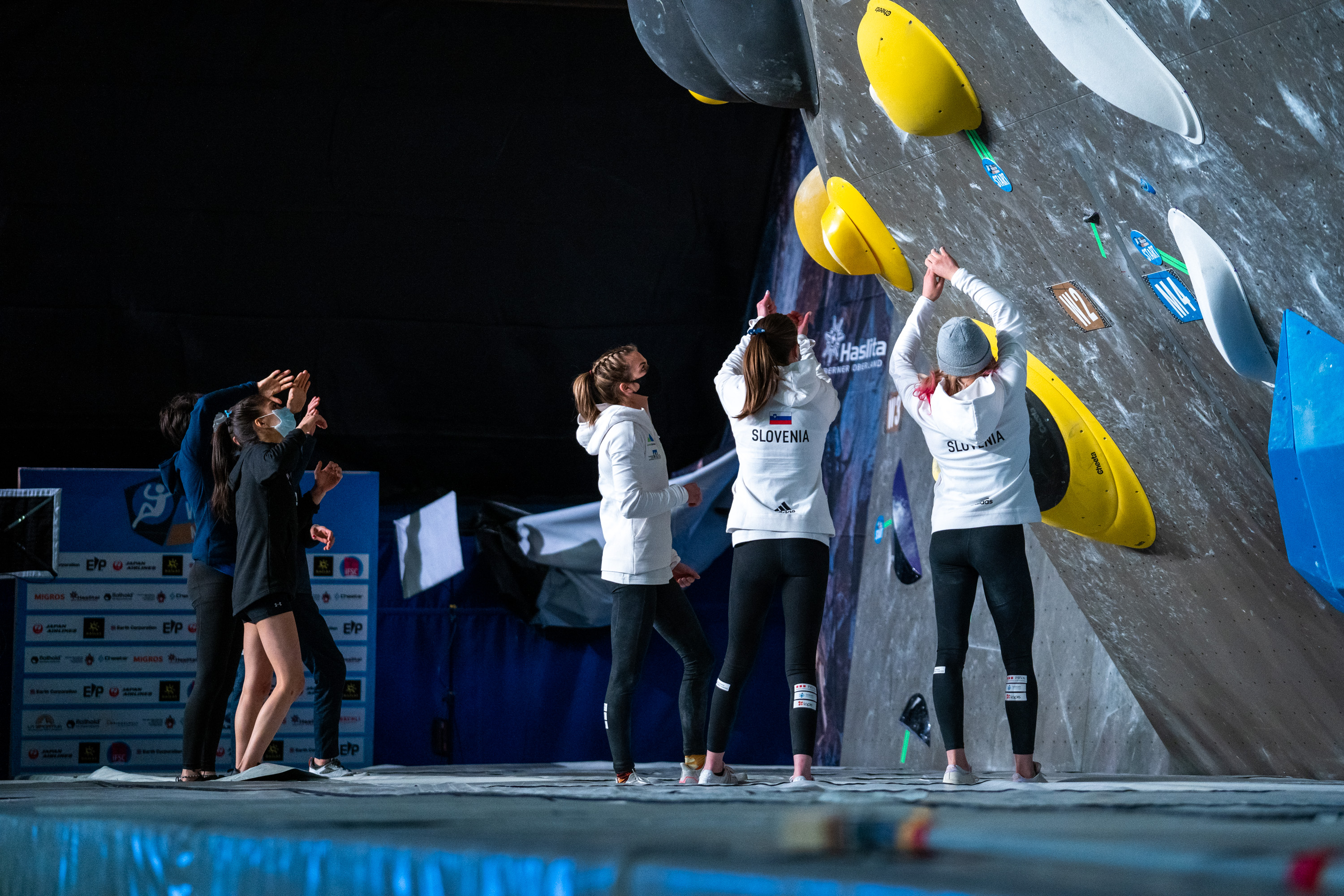 Katja Debevec, Janja Garnbret in Vita Lukan so bile slovenske predstavnice v finalu tekme. (Foto: Luka Fonda)