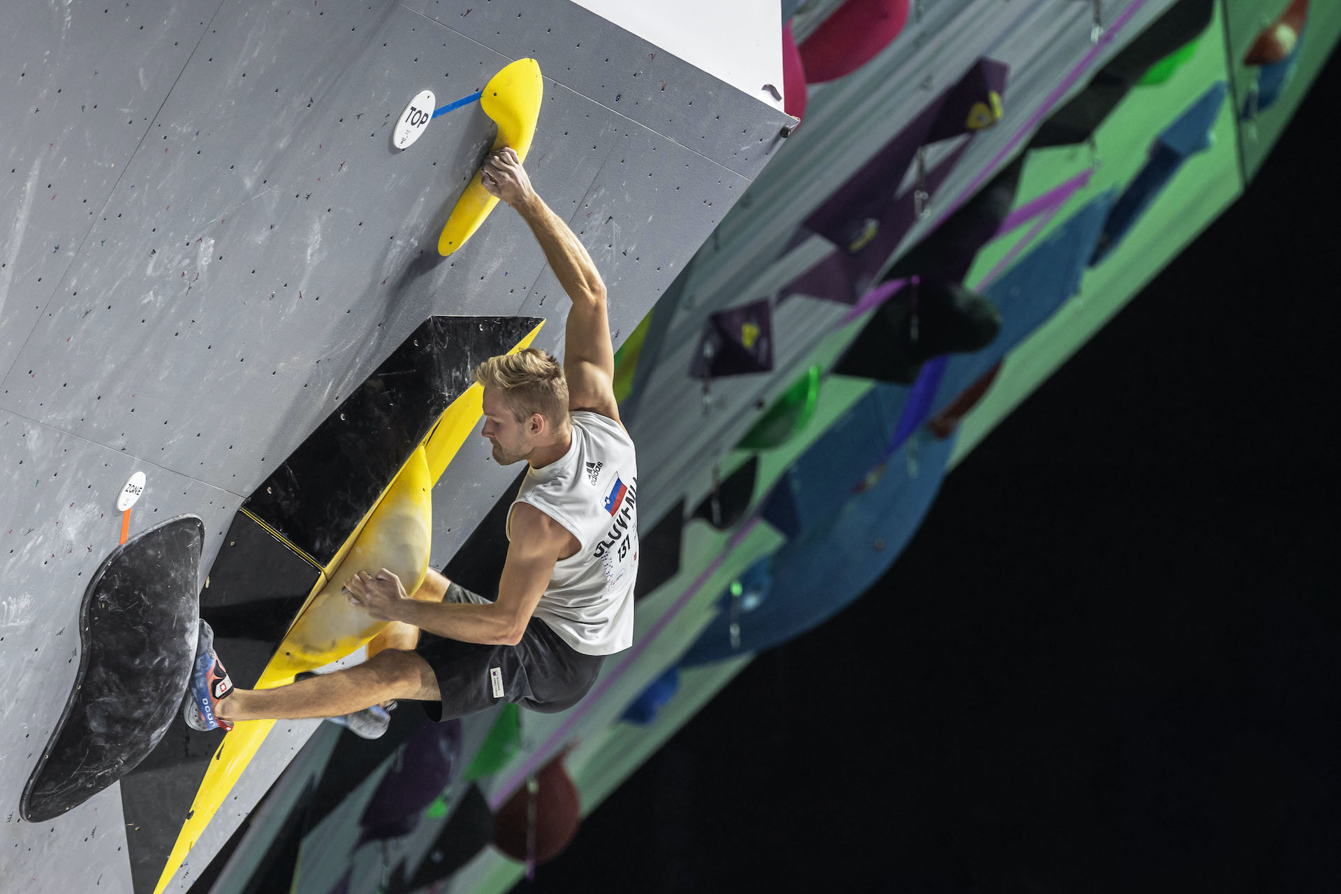 Anže Peharc si je z odličnim plezanjem v Moskvi priplezal svoj prvi finale svetovega prvenstva v balvanskem plezanju (foto Luka Fonda)