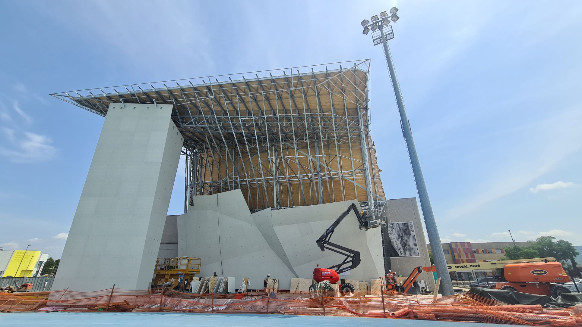 Plezalna stena bo sestavljena iz jeklene konstrukcije in plezalnih plošč. (Foto: Luka Fonda)