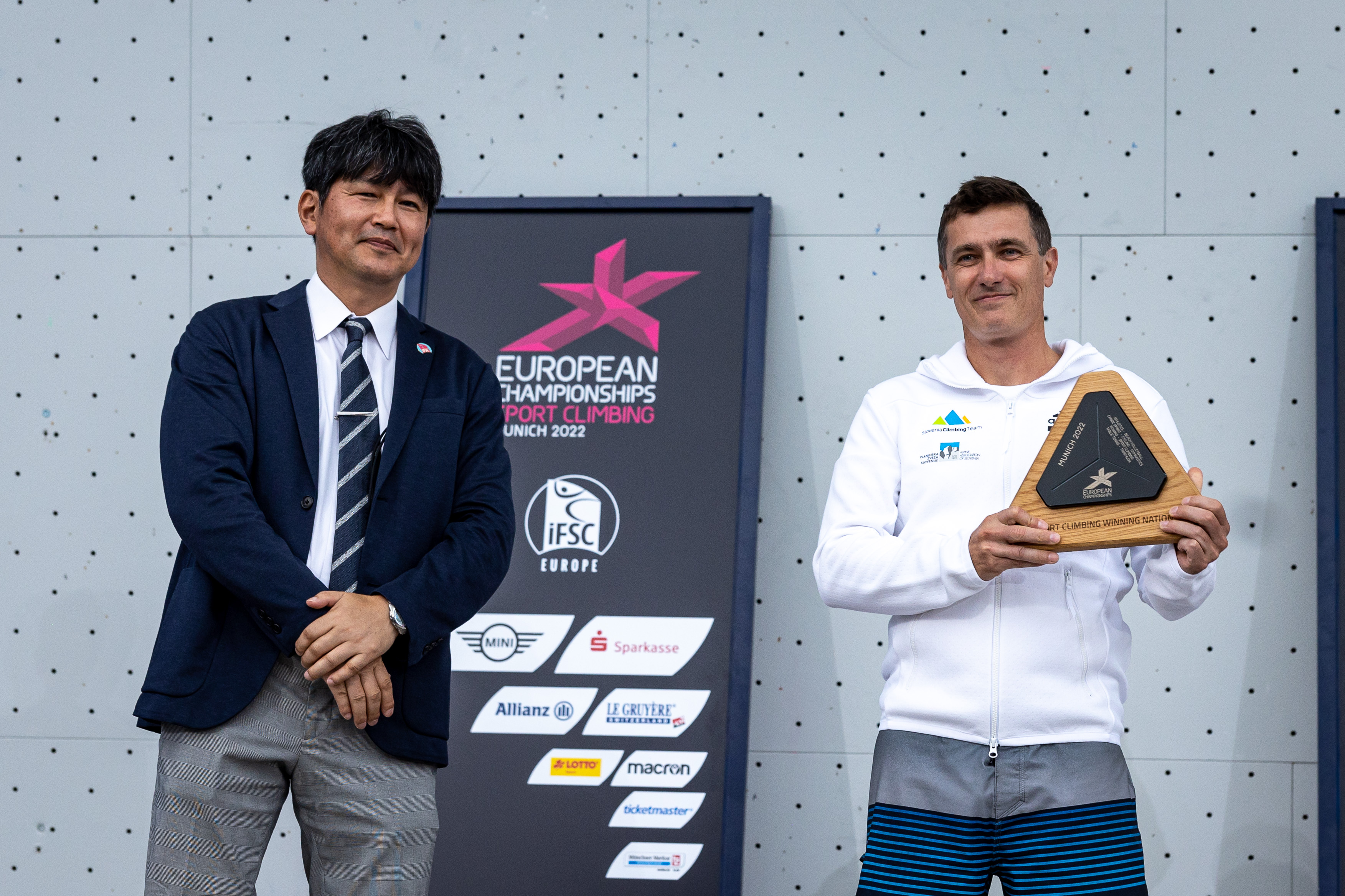 13-članska reprezentanca je zadnji dan tekmovanja dobila še posebno priznanje. Selektor Gorazd Hren je namreč prevzel nagrado najuspešnejše države po številu medalj. Ta nagrada je po besedah selektorja potrditev uspešnih uvrstitev slovenskih tekmovalcev. »Ponosen sem na člane slovenske reprezentance. To je lepo priznanje za njih, zame in celotno Slovenijo. V Münchnu smo vsak dan tekmovanja stopnjevali z uspehi. Upal sem na kakšen nastop več v finalu v posamezni disciplini. Uvrstitev dveh deklet in enega fanta v finale kombinacije je to, kar sem si želel in ni bilo pred tem nekaj samoumevnega. Uvrstitev in še dve medalji so krasna popotnica za vnaprej. Na prvenstvu smo testirali nov način tekmovanja in vem, da imamo še kaj prostora za izboljšave. Ponosen sem na ekipo in njihove dosežke.«