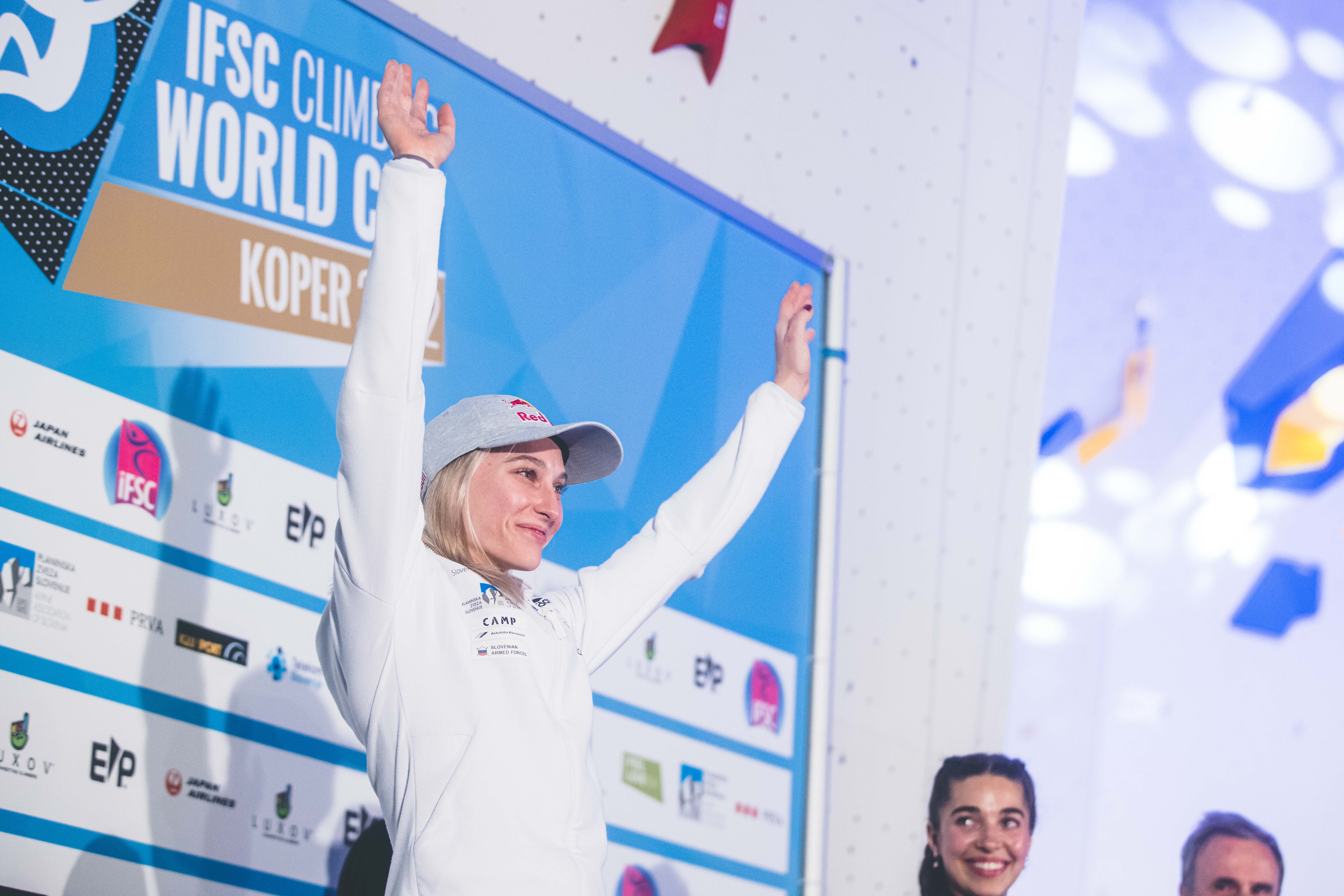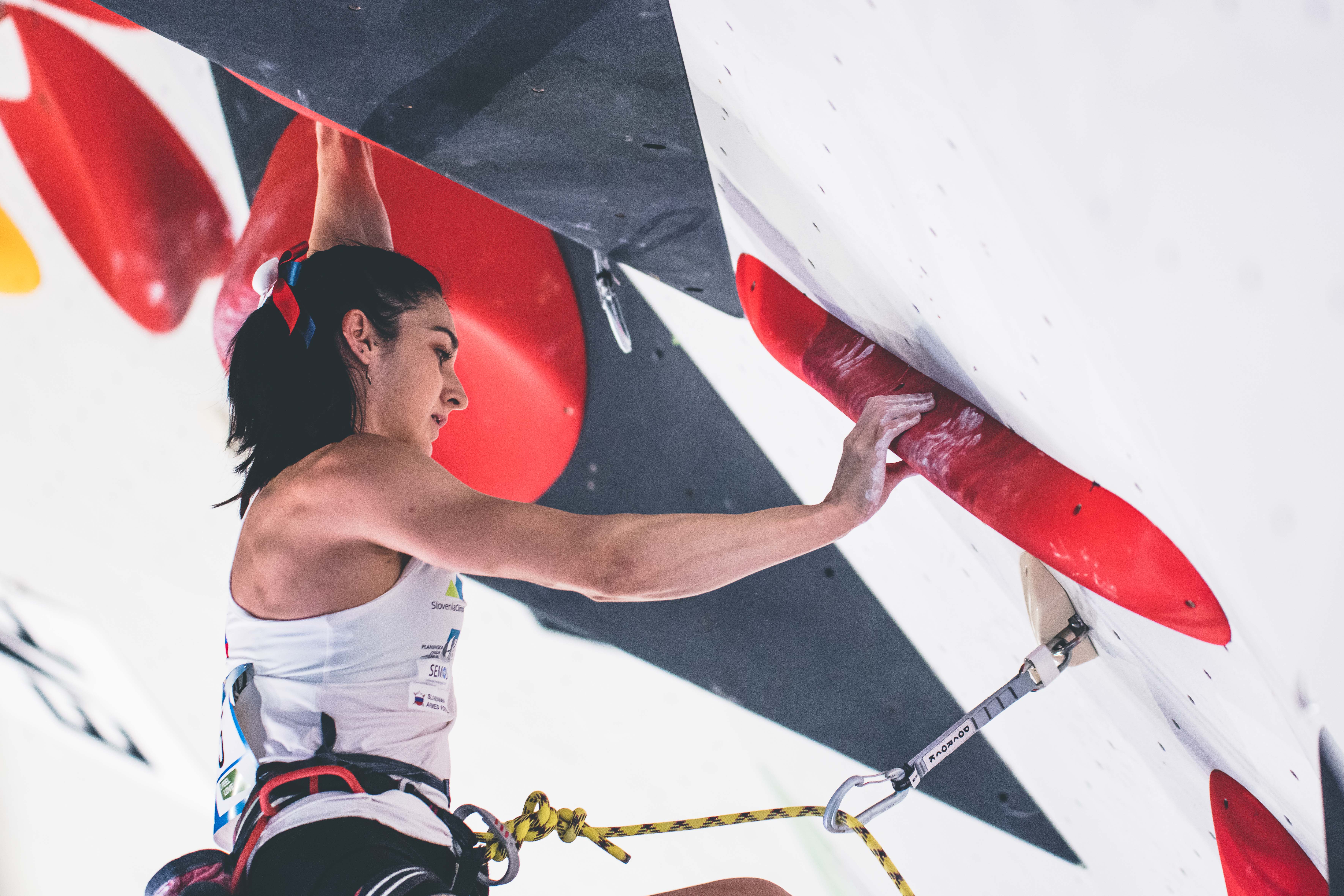 Garnbretova je priplezala 54. stopničke v svoji karieri in še vedno vodi v skupnem seštevku v težavnostnem plezanju.