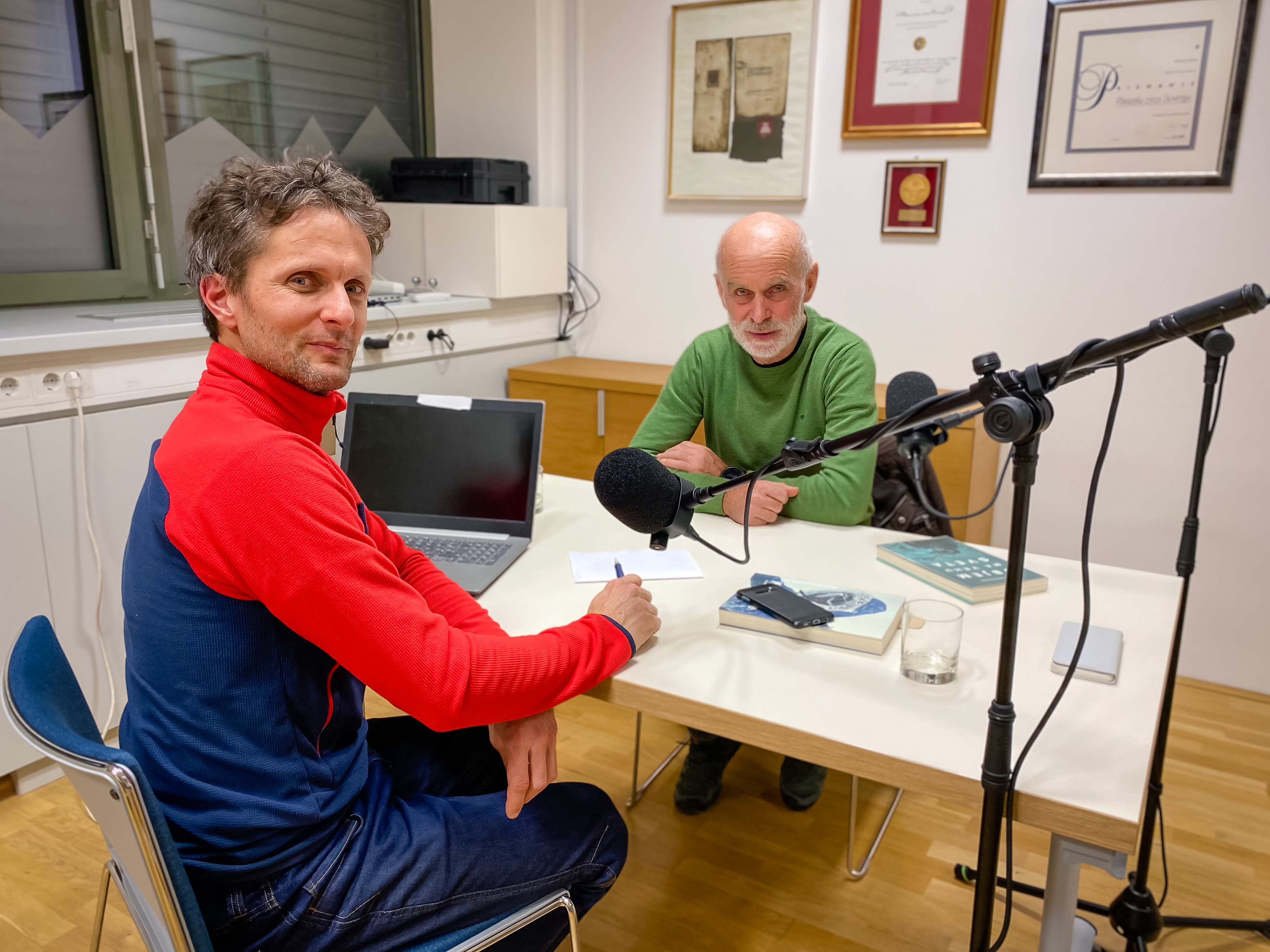 Miha Habjan in gost prvega podcasta Andrej Štremfelj (foto Luka Maček)