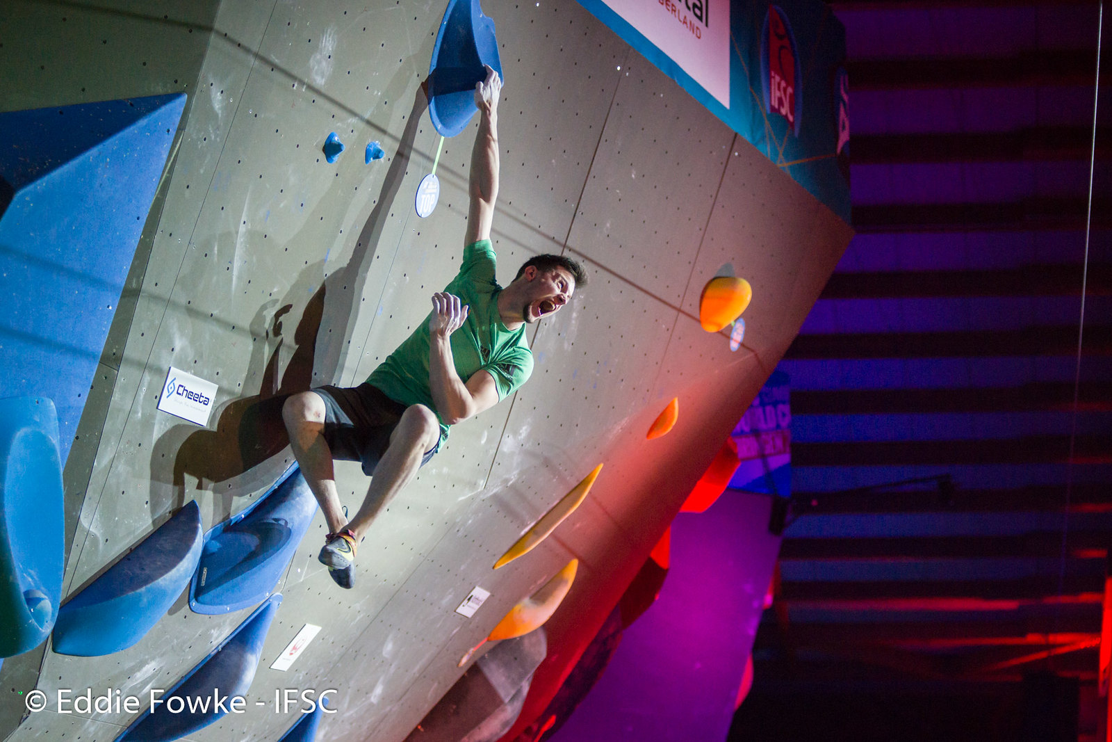 Jernej Kruder na pomembni tekmi v Meiringenu leta 2018 (foto Eddie Fowke/IFSC)