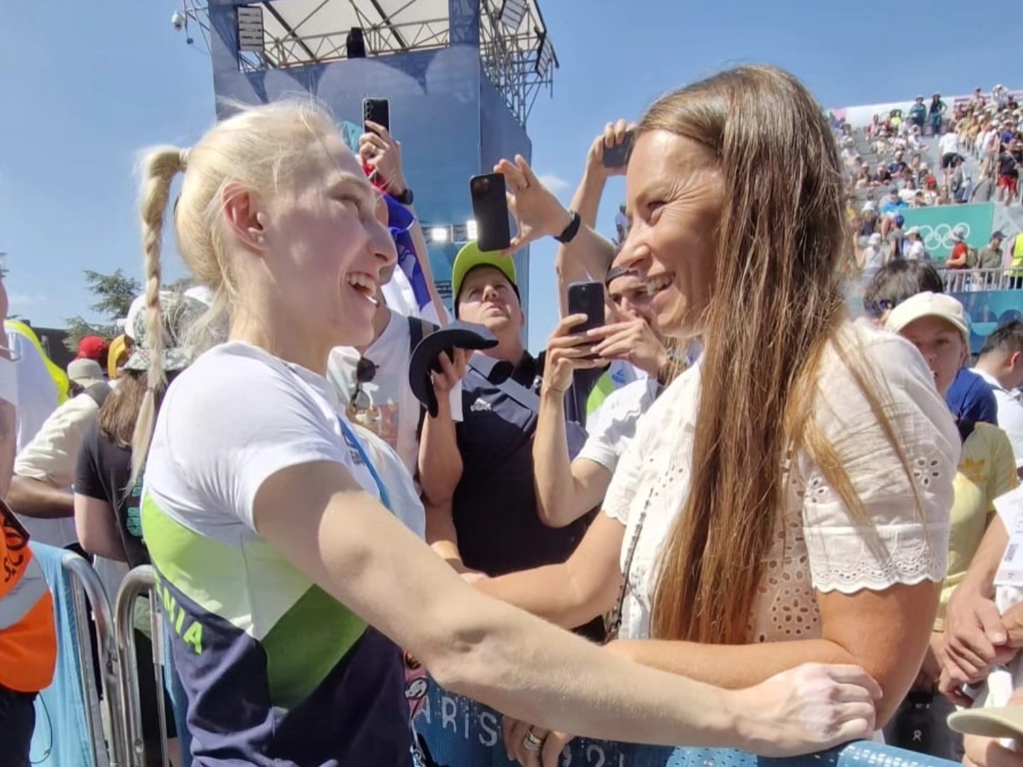 Med množico navijačev je Janjo Garnbret podpirala tudi slovenska olimpijska šampionka Tina Maze (foto OKS)