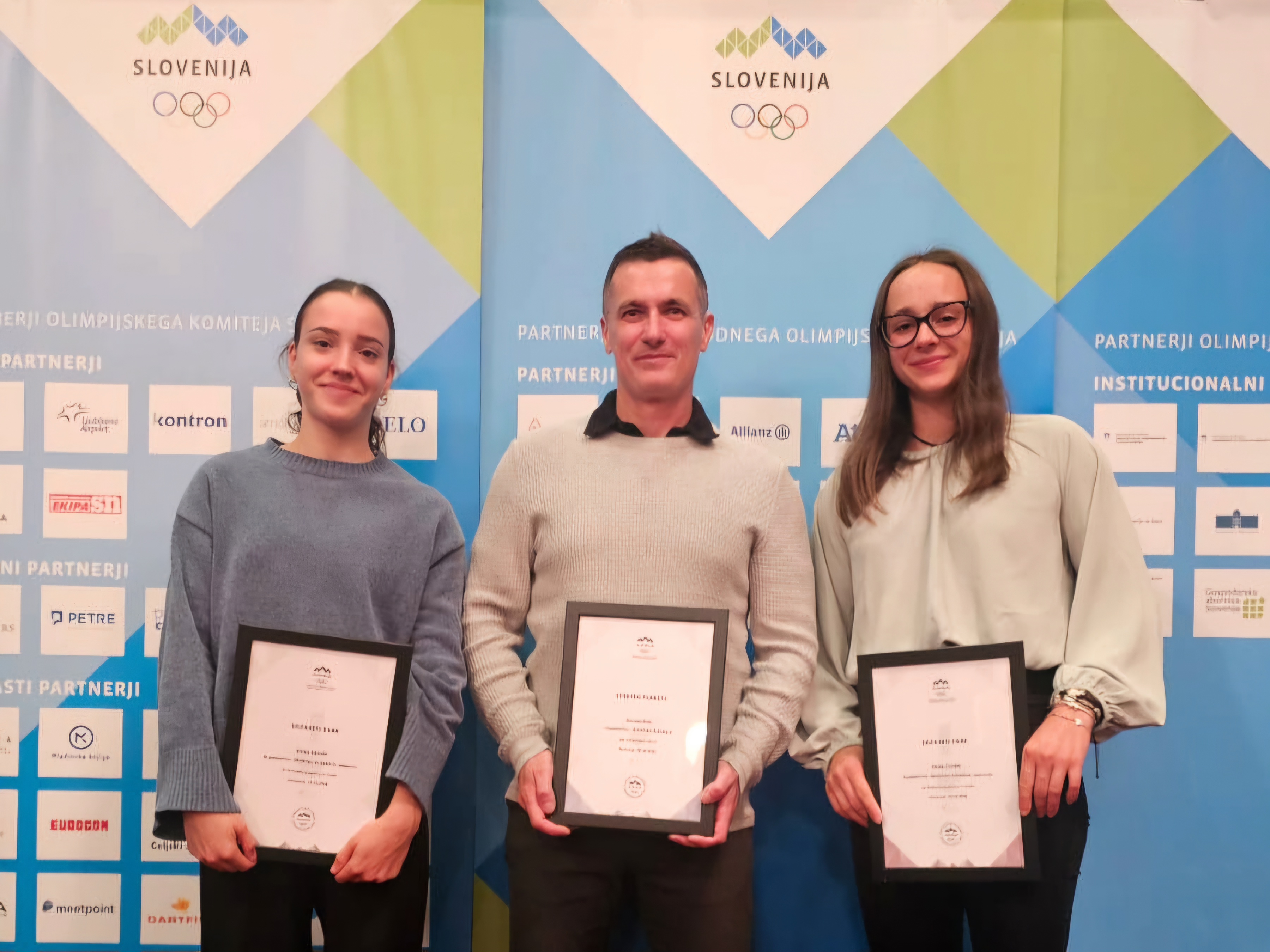 Rosa Rekar, Gorazd Hren in Sara Čopar so v Portorožu prejeli priznanja OKS-ZŠZ za dosežke v letu 2023 (foto Luka Fonda)