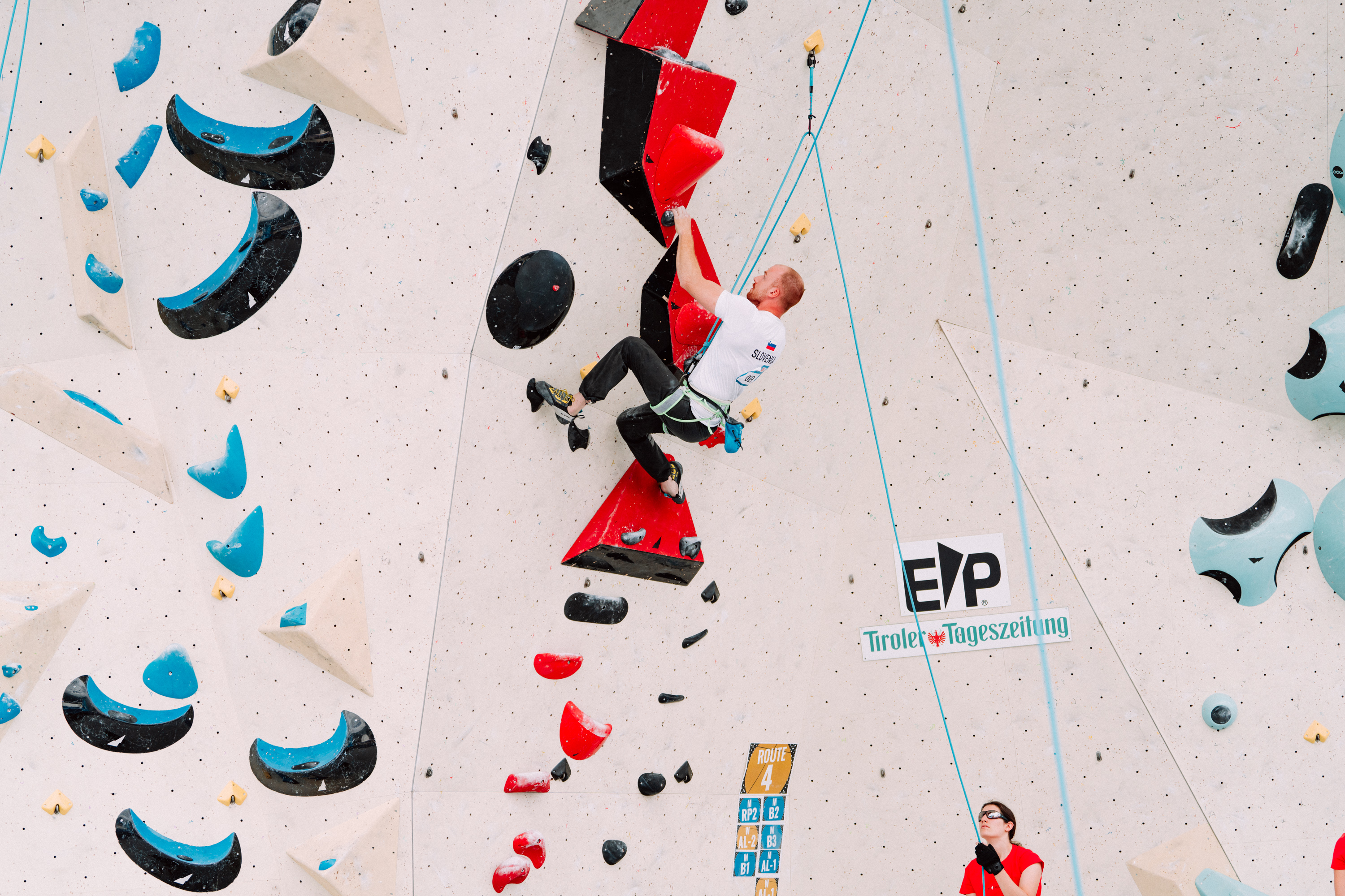 Matej Arh bronast na tekmi svetovnega pokala v paraplezanju v Innsbrucku (foto Lena Drapella IFSC Climbing)